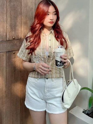 Xem nhanhS/ Caro vàngM/ Caro vàngÁo sơ mi croptop suông cotton dệt ren caro vàng tay ngắn Đã bán 224219.000đ